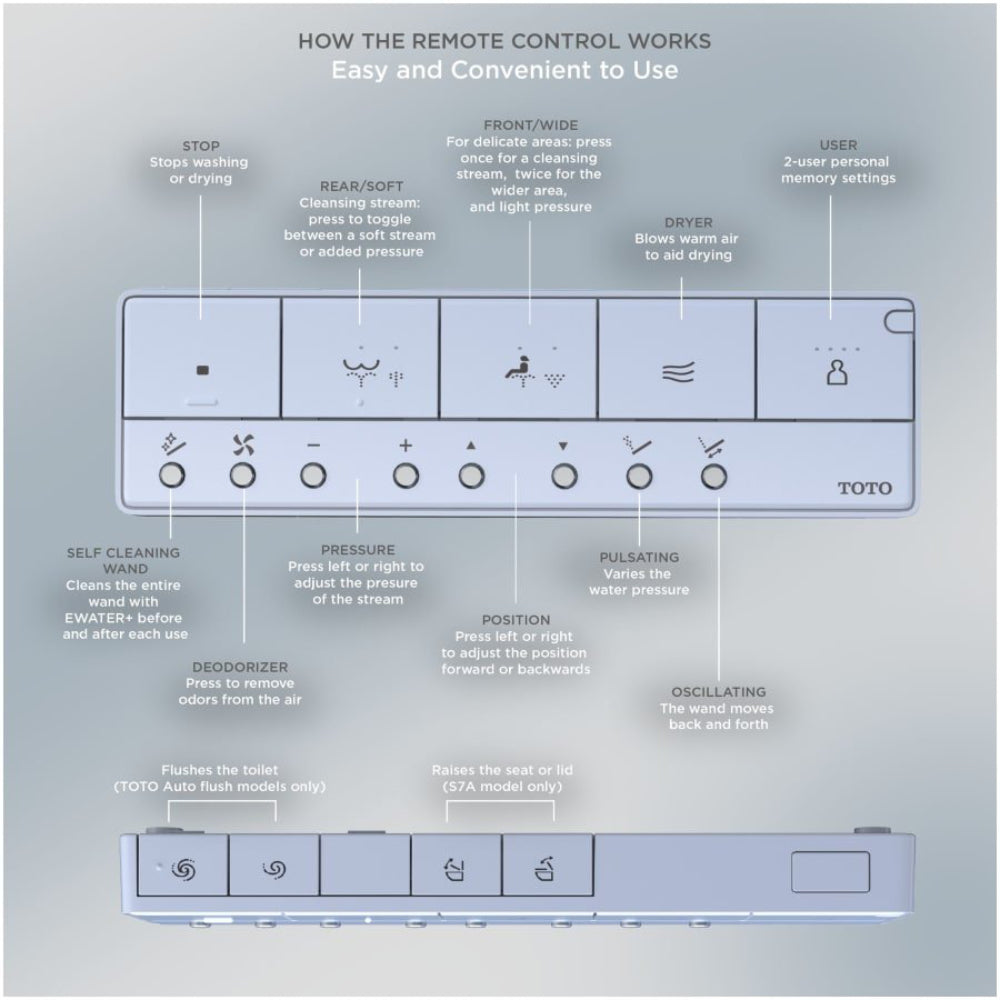 - With TOTO's cutting-edge EWATER+ system, the WASHLET S7 mists the wand and bowl, reducing the need for harsh chemicals and ensuring a hygienic clean every time.