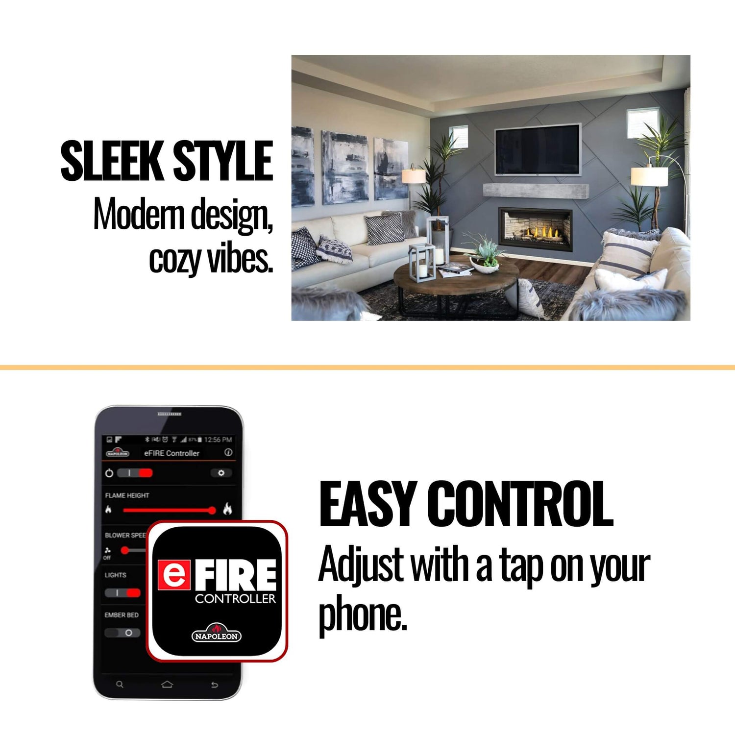 - Control your fireplace effortlessly with the eFire mobile app, offering ultimate flexibility and ease of use.