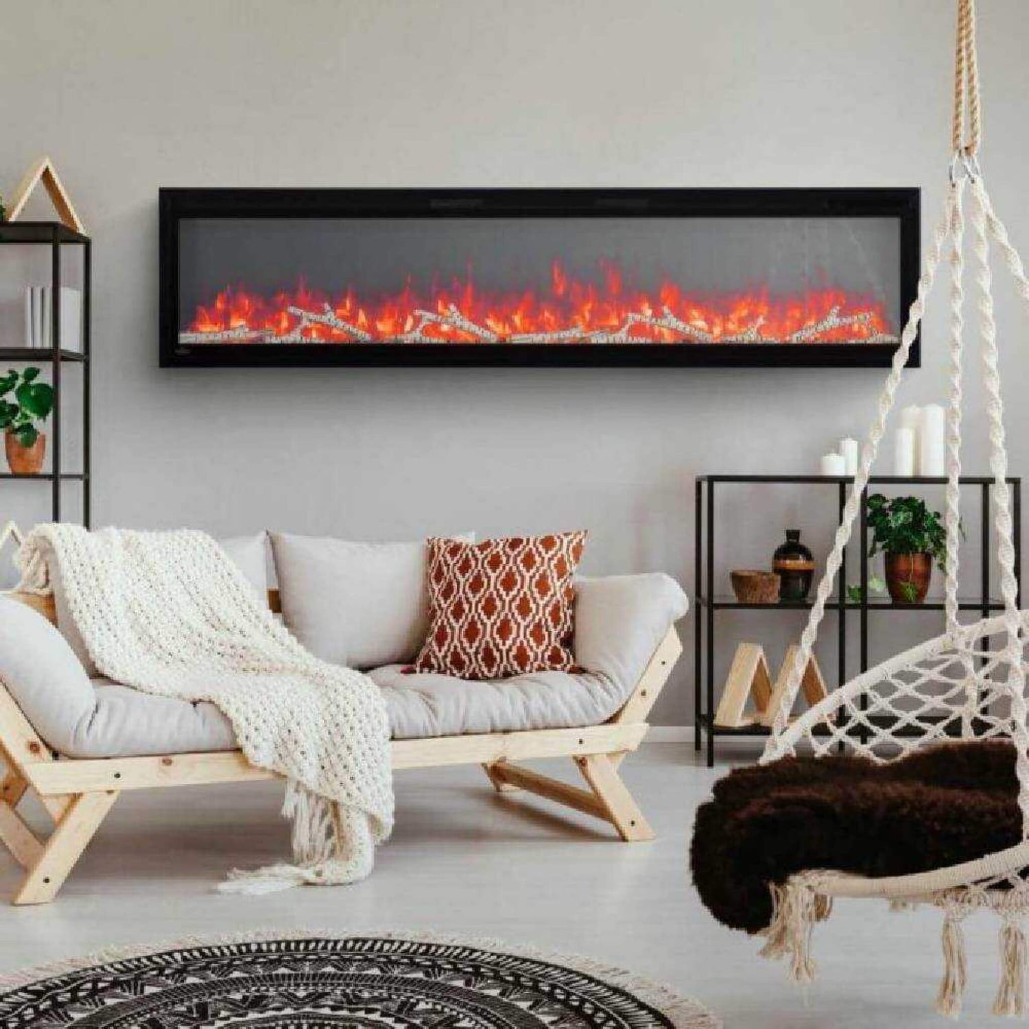 Its mesmerizing flames, customizable to your mood, dance against a stunning backdrop, creating an ambiance that's both inviting and sophisticated. With the freedom to adjust brightness, heat, and even the color of the embers, you're the architect of your own personal sanctuary.