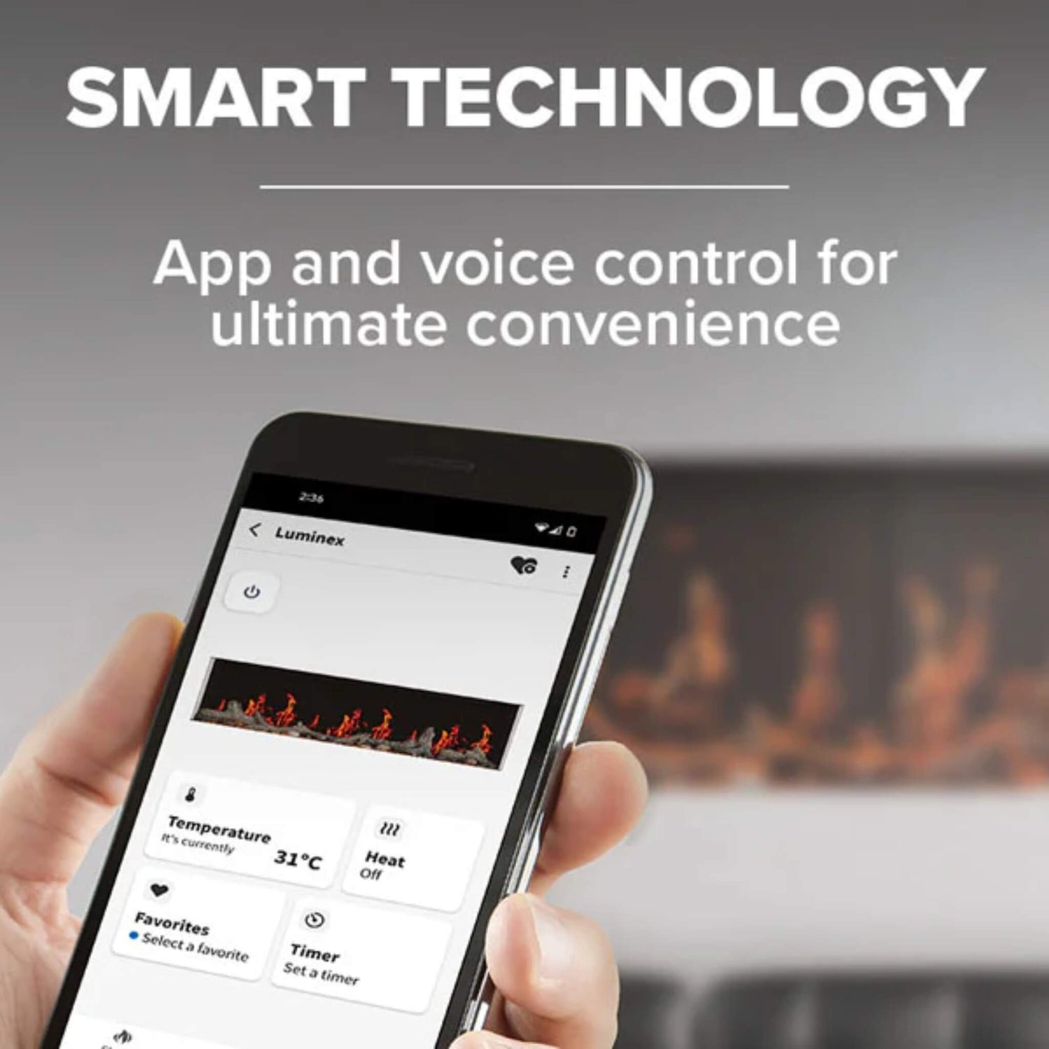 - Experience the future of home comfort with the Luminex Electric Fireplace, which integrates seamlessly with smart technology. Control settings through voice commands or your mobile device for effortless operation.
