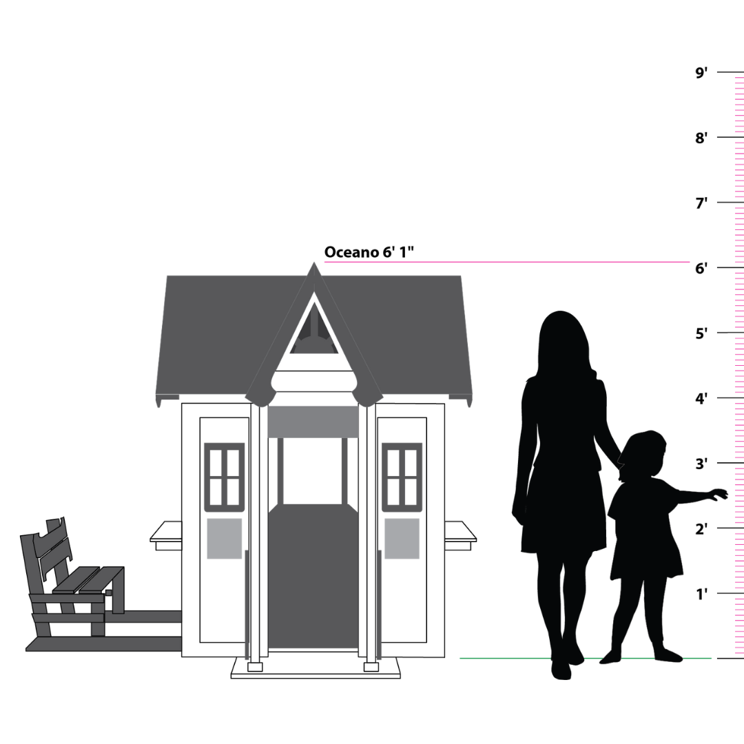 Bring timeless charm to your child’s playtime with the Oceano Playhouse—a Victorian-inspired haven designed for both backyard fun and indoor playroom adventures. With its elegant white and black peaks, this playhouse is as stunning as it is functional, sparking hours of imaginative play in any setting.