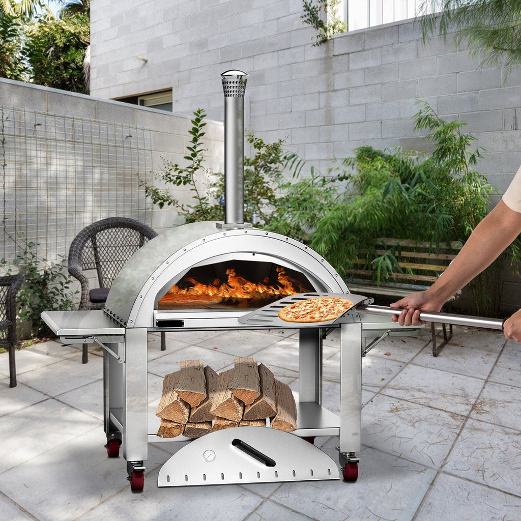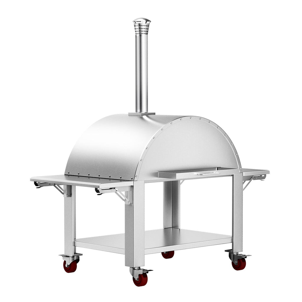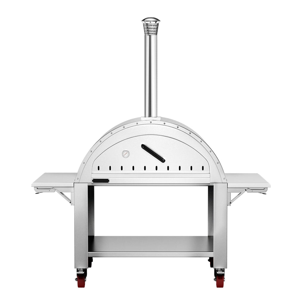 Outfit your outdoor kitchen for effortless convenience with the 4 removable wheels and chimney of the 46" Premium Wood-Fired Stainless Steel Artisan Pizza Oven Maker. Elevate your entertaining with this oven - unleash endless culinary possibilities and wow your guests with delectable wood-fired pizzas! Quickly set up and break down your outdoor kitchen so you can savor every second of fun.