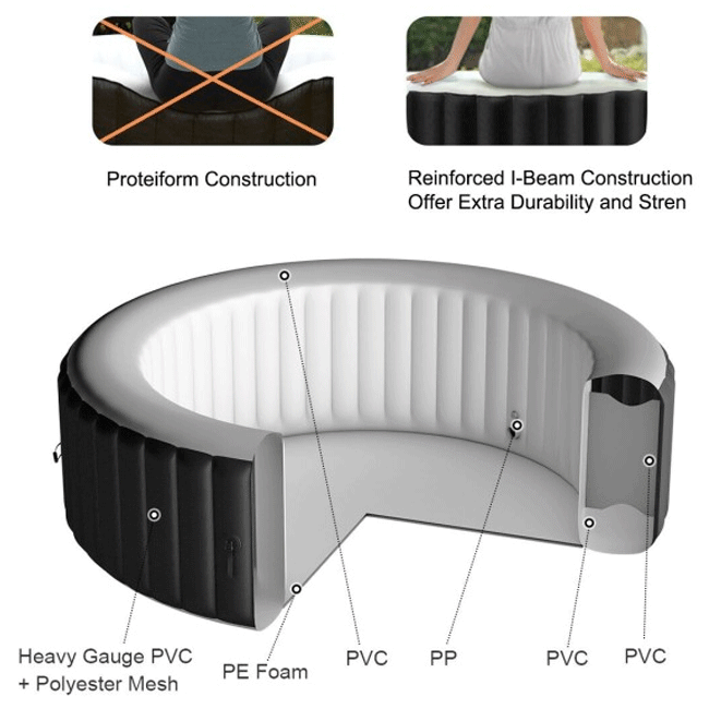Easy Operation: Our soft hot tub comes with most of the components that you need to get it fully assembled. All that you have to do is to inflate the base with a pump, fill it with water, and power up the bubbles.