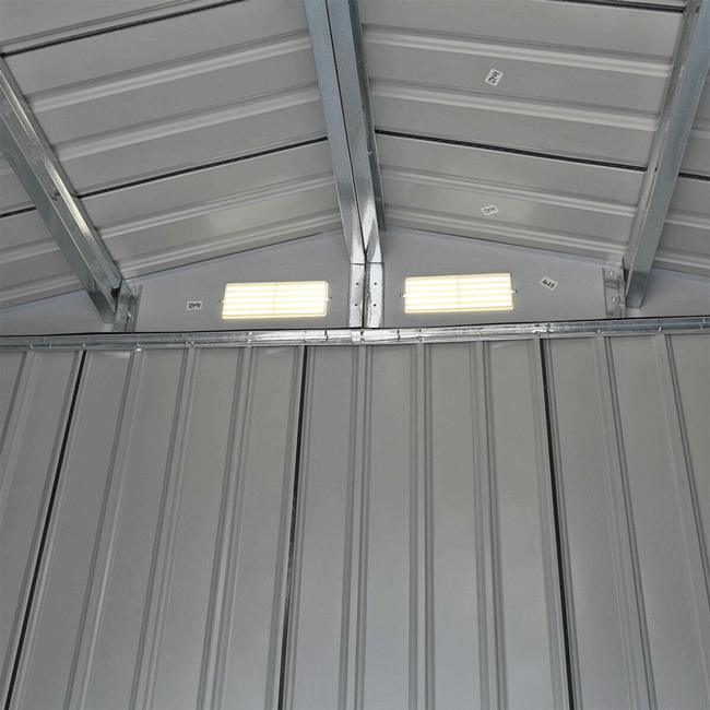 Equipped with tall and rugged doors, our premium garden shed gives you easy access to all the tools that you need for gardening work. Plus, the metal shed comes with a sturdy roof that protects the insides from intense heat and rain.