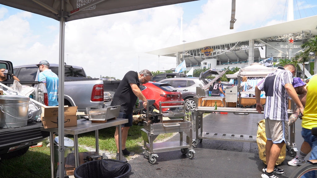 Our BBQ03SS MINI Santa Maria Argentine grill follows the versatility of our BBQ03SS model, but the mini version. IDEAL FOR TAILGATING OR TO ACCOMPANY YOU ON YOUR NEXT TRIP! Made entirely of 304 stainless steel to guarantee its performance. This model marks our origins and serves as the foundation of our journey. It boasts complete versatility, featuring convenient hooks for food hanging, a secondary grate for impeccable searing, and the added advantage of an interchangeable griddle. The possibilities offered by this model are truly diverse and abundant.